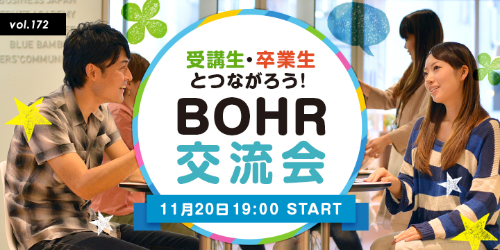インターネット・アカデミーでは、11月20日(金)に「受講生・卒業生とつながろう!BOHR交流会」を実施します!(※ご参加いただけるのは、インターネット・アカデミーの受講生と卒業生が対象です。) 今回のイベントも、受講生同士の親睦を深めるべく、校舎を飛び出して会を開催します♪ 前回開催した交流会の様子 前回は7月に交流会を開催しました。 たくさんの方にご参加いただき、大変盛り上がることができました。 そのときの様子を写真でご紹介します。 参加した卒業生からは、ご自身がスクールに入校し、Webデザイナーになるまでのお話や、今はスマートフォン制作のスキルが必須であることなど、様々なことをアドバイスして頂きました。 社会人になってしまうと、なかなか新しい友人を作ったり、仲間を作る機会が減ってしま