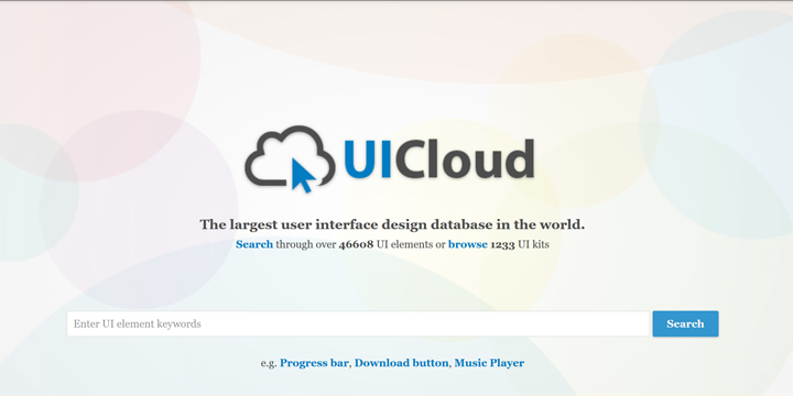 今、Webデザインをするにあたり、「UI(User Interface)」を考えることはとても重要です。 UIは、コンピューターや機械を操作するときの画面表示やメニューといった、ユーザーと接点のある部分や表現のことを指します。 一言で言うと、「ユーザーが使用する部分」はすべてUIなのです。 そのUIの使用感を高めれば、操作性がよく、使い勝手の良いWebサイトを制作することができるのです。 本日ご紹介する「UICloud」は、46,000以上のUIを豊富に取りそろえた素材サイトです。ボタンやメニューなどのデザインを検索し、ダウンロードすることが可能です。 「UICloud」の使い方 UICloudは、サイトにアクセスをすると最初に「Enter UI element keywords」と書かれ