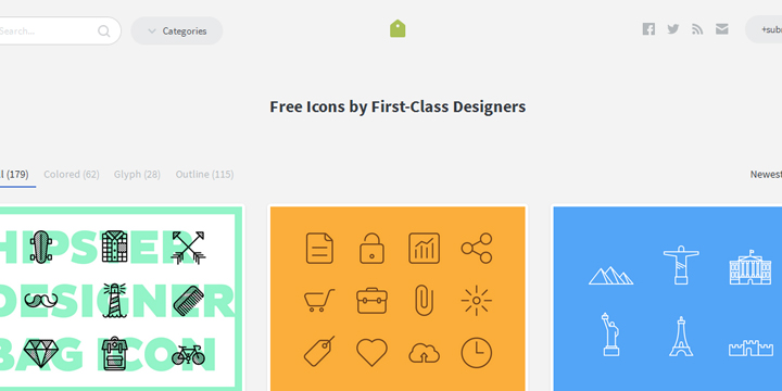 アイコンは、自分で作っても良いのですが、効率良く制作を進める上では、できれば良質な素材が手に入ると嬉しいですよね。 そんな方にオススメなのが、「IconStore」です。 なんと、このサイトでは、可愛くってシンプル、とっても使いやすいアイコンセットが、「無料」&「商用利用OK」でダウンロードすることができます! サイトにアクセスをすると、アイコン一覧が表示されます。 アイコンの探し方は、サイト上部の「Categories」からカテゴリ検索もできますし、キーワード検索をすることもできます。 気になるアイコンセットを見つけたら、クリックして詳細画面を出しましょう。 ファイル形式はpsd、SVG、ai、Webフォントなどアイコンセットごとに様々。 それらの情報をチェックしたら、「Download