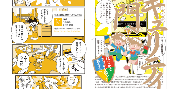 毎年、2月1日~3月18日は政府主導で「サイバーセキュリティ月間」が実施されています。 同月間中、さまざまな団体がサイバーセキュリティの普及啓発を訴える活動を行っています。 その取り組みのひとつとして、Googleがスマートフォンのオンラインセキュリティについて学べる『まんが セキュリティ入門』を無償公開しました。 このマンガは、はじめてスマートフォンを持った衛(まもる)くんが、クラスのマドンナ守美(もりみ)ちゃんからのメールに導かれて異世界に迷い込み、インターネットのセキュリティの重要性を学びながら冒険する...というお話です。 初めてスマホを持つ中学生・高校生でもわかりやすい言葉とストーリーで、インターネット利用の上でのセキュリティの重要性、マナー、注意点が紹介されていて、大人が読んで
