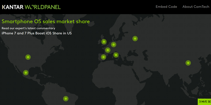 2016年9月にイギリスの調査会社Kantar Worldpanel ComTech(カンター)が出した統計データでは、日本国内のスマートフォンOSの販売シェアはAndroidが61.7%、次いでiOSが37.4%と出ています。 同じくカンターの2016年1月時点での調査では、日本ではiOSのシェアが50.3%と半数を占めており、Androidの48.7%を超えていましたが、3月にAndroidとiOSのシェアが逆転して今に至ります。 とはいえ、調査月によっても販売シェアが大きく変わるのはよくあることですので、定点観測しつつ、大きな流れを見ていくことが大切ですね。 販売シェアの動きを調べるには ちなみに、上記のスマートフォンOSの販売シェアの数字はカンターが公開している「Smartphon