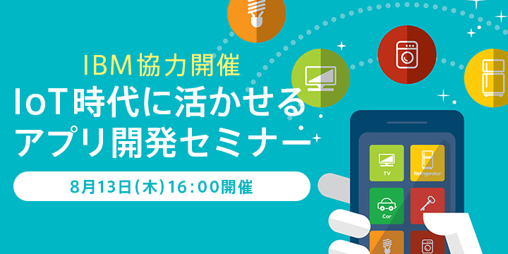 インターネット・アカデミーでは、8月13日(木)に「IoT時代に活かせるアプリ開発」セミナーを実施します! 今回のセミナーでは、日本アイ・ビー・エム株式会社でソリューションITアーキテクトをされている関根 賢一氏をお招きし、初心者でも簡単にアプリ開発ができる「IBM Bluemix」についてご紹介をしていただきます。 なぜ初心者でも大丈夫なの?? 通常アプリ開発をするのであれば、JavaやC言語といったObjective-Cなど、プログラム言語の知識を習得する必要があります。 しかし、今回のセミナーで紹介するのは、IBMが開発したクラウドサービス「IBM Bluemix」を活用したアプリ開発なので、特別な知識を必要とせずにアプリ開発を行うことができます。 具体的には、「IBM Bluemi