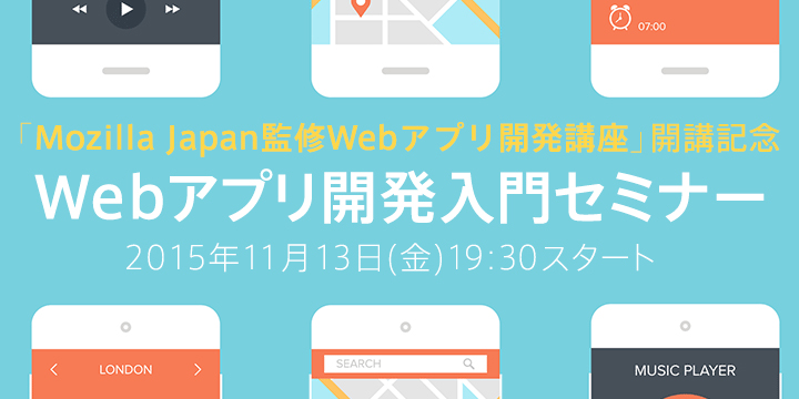 インターネット・アカデミーでは、11月13日(金)に「Webアプリ開発入門セミナー」を実施します! 11月22日(日)からスタートする「Mozilla Japan監修Webアプリ開発講座」に先駆け、Web技術を用いたアプリ開発を体験することができます。 しかも!先着5名でインターネット・アカデミーの受講生・卒業生以外の方にもご参加いただけます! Webアプリケーションとは? 一言で「Webアプリケーション」と言うと、実は定義があいまいで、場合によってはブログやSNS、ポータルサイトなどといったWebサービスも含まれるため、かなり広範囲な意味になってしまいます。 今回のセミナーでご紹介する「Webアプリ」は、"HTML、CSS、JavaScriptといった、Webサイト制作で使用する言語を使