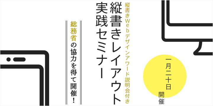 インターネット・アカデミーでは、1月20日(水)に「縦書きWebデザインアワード説明会付き 縦書きレイアウト実践セミナー」を実施します! 今回のセミナーは、縦書きWebデザインアワードに沿った説明会付きセミナーであり、昨年開催された「縦書きレイアウトのWebコンテンツ実践セミナー」に参加された方も再度ご参加頂ける内容になっています。 縦書きWebデザインアワードとは? 縦書きWebデザインアワードは、CSS Writing Modes (文字表記の方向(縦横)を指定するCSSモジュール)を使用し、縦書きのレイアウト作品を募集するというコンテストです。 作品募集は「自由部門」「課題部門」「高校生以下の部」の3つに分かれていて、それぞれにプロ、アマチュア、学生かどうかに関係なく、個人またはチー