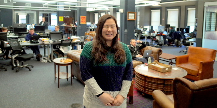インターネット・アカデミー新宿校に普段通っている受講生の小川原さんが、インターネット・アカデミーのニューヨーク校にインターンシップに来てくださいました! 小川原さんは、現在大学2年生。 Webスキルをつけるべく、大学とインターネット・アカデミーのダブルスクールで通われているのですが、大学の春休み期間で、海外インターンシップをしてみたいというご要望を頂き、はるばるニューヨークまで来ていただくことになりました。 インターネット・アカデミーに入校したのは昨年の11月ですので、なんとたった3ヶ月間ほどで、制作現場のチームに入るレベルまでスキルを習得。 そのスキルを、ITビジネスの世界最先端都市のニューヨークで実践に活かしたいと考えていらっしゃる、と話に聞いていたので、私も小川原さんにお会いできるの