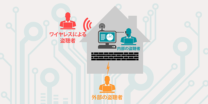 皆さん、こんにちは。 本日は盗聴による攻撃と脅威についてご紹介いたします。 盗聴とは ネットワークセキュリティにおいて盗聴とは、ネットワークでやりとりされているデータや、 ネットワーク上に接続されているコンピュータのデータを不正に盗み取ることです。 ネットワーク盗聴やパケット・スニッフィングとも呼ばれることがあります。 パケットとは パケットとは、通信データを小さく分割した1つのまとまりのことです。 このように小さくするのは、通信回線の効率的な利用のためなのですが、 このパケットには、パスワードやIPアドレスといった情報を含んでいることがあります。 パケットは発信されてから目的地に着くまでの間に盗聴される危険性をはらんでいます。 攻撃者は、ネットワークやパケットを盗聴することで、個人情報を