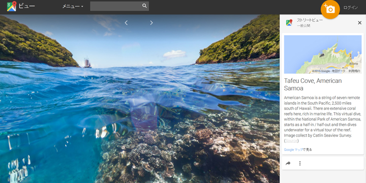昨日、6月8日は「世界海の日(ワールド・オーシャンズ・デー)」。 それにあわせて、新しくGoogleマップのストリートビューの「海洋」ページに、世界中の海中画像が新しく追加されました。 Googleは、今回のアップデートでストリートビューのギャラリーに新たに海中のロケーションを40カ所追加したとか。 場所は、バリ島やオーストラリアのグレートバリアリーフ、バハマなど、名前を聞くだけでうっとり。 さらに、実際にアクセスすると画面いっぱいに現れる、愛くるしいクジラやマンボウといった海の動物たち、そして荘厳に思える美しい魚の群れ...。 本当に癒されます。 梅雨に入って、おでかけもできずに気分がじめじめしちゃったり、パソコン作業ばかり続いて気分転換したい!というときにぼんやり眺めるのがお勧めです。