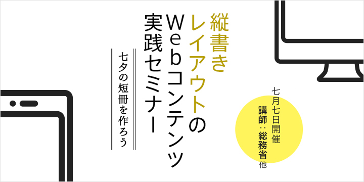 インターネット・アカデミーでは、10月20日(火)に「縦書きレイアウトのWebコンテンツ実践セミナー」を実施します! 今回のセミナーは、7月に行った「縦書きレイアウトのWebコンテンツ実践セミナー ~七夕の短冊を作ろう~」の第二回目の開催となります。(気になる方、縦書きレイアウト技術について知りたい方は前回ブログ「七夕は縦書きレイアウトで願いを込めよう」をぜひご覧ください!) 企業のWeb担当の方、制作会社にお勤めの方で、HTMLの仕組みを理解されている方であればどなたでもご参加いただくことができます。 講師には、インターネット・アカデミーの鈴木先生の他、企業のWeb担当の方、総務省や大学講師、Webにおける縦書きレイアウトに積極的に取り組んでいる企業など大変豪華な方々をお招きしています。