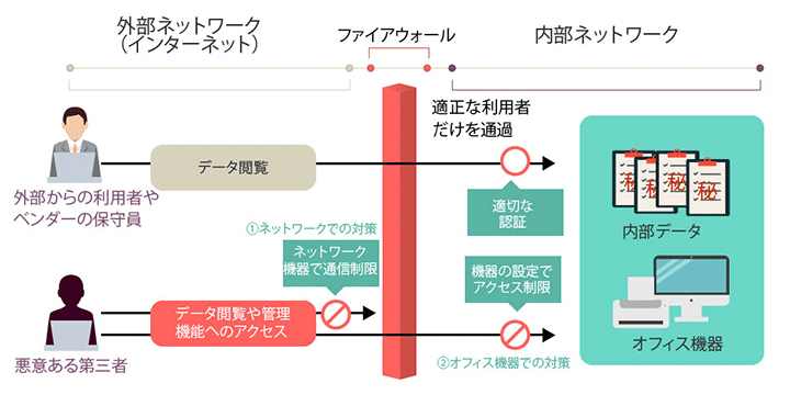事務機器のIT化 最近、オフィスや大学などで使用されている事務機器のIT化が進んでいます。コピーやスキャナー、 ファックスなどの機能を1台にまとめたデジタル複合機の大半は、ネットワークに接続して管理することができます。 また、コピーした文書のデータやスキャナーで取り込んだデータをファイルとして保存することもできるようになりました。 これらの文章は、ブラウザ等を使って、ネットワーク経由で閲覧をすることが可能です。 しかし、機能がパソコンに近づき、便利になった分、従来のコピーやプリントといった用途のみの使用では 考えられなかったような落とし穴や危険性が増してきており、 廃棄時やリース返却時にオフィス等で消去したはずの文書のデータを復元されて情報を盗まれたり、 ネットワーク上の通信データを盗聴さ