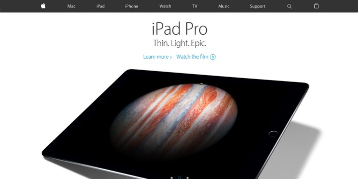 今回は、RWD(レスポンシブウェブデザイン)に関する分析レポートです。 レスポンシブ対応をしているWebサイトを作るには、知識があればなんとか形にすることはできますが、ベストプラクティスにたどり着くのはなかなか難しいもの。 そういうときに大事なのは、成功事例の徹底的な分析です。 そこで今回は、いまやUIデザインの代名詞とも言える、Apple社のWebサイトを研究してみました! Apple公式Webサイトhttp://www.apple.com/ まず目を引くのは、ファーストビューにどんと置かれているヒーローイメージ(いわゆるアイキャッチ画像)ですね。 それと同時に、コントラストがはっきりした濃いグレーのグローバルナビゲーションにも目がいきます。 これをモバイルで見るとどうなるでしょうか。