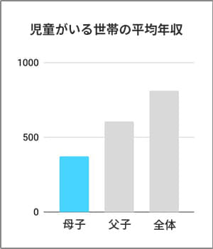 また、おなじひとり親世帯でも、父子世帯の平均年収は606万円と、母子世帯と父子世帯との間で大きな格差があります。