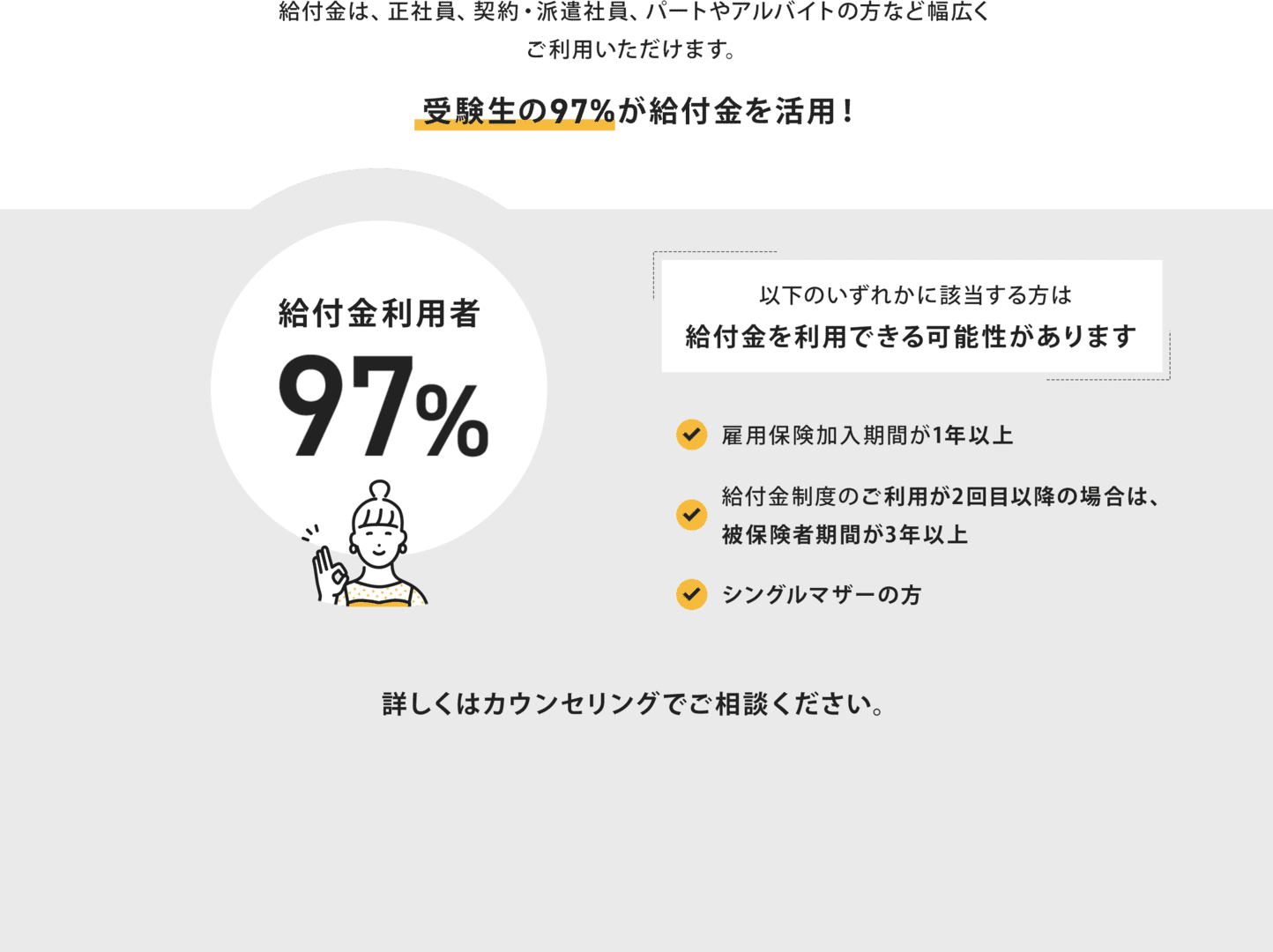 履歴書の作成や、お仕事獲得までのアドバイスなど、キャリアチェンジをする方の不安を取り除きます。