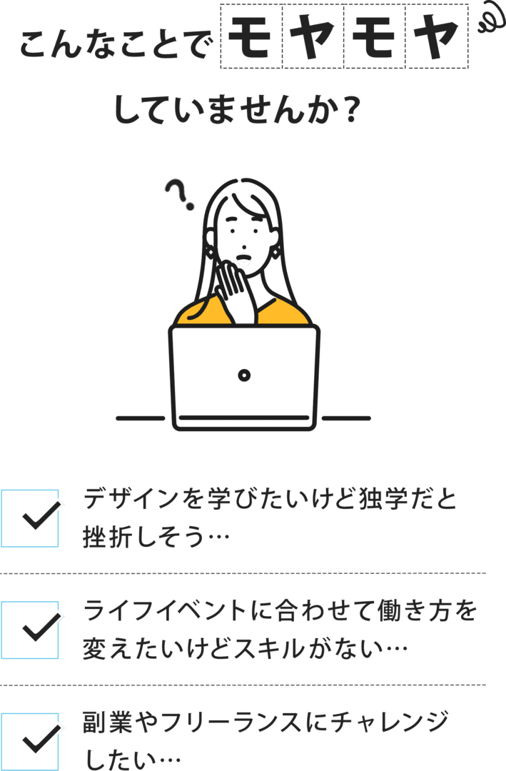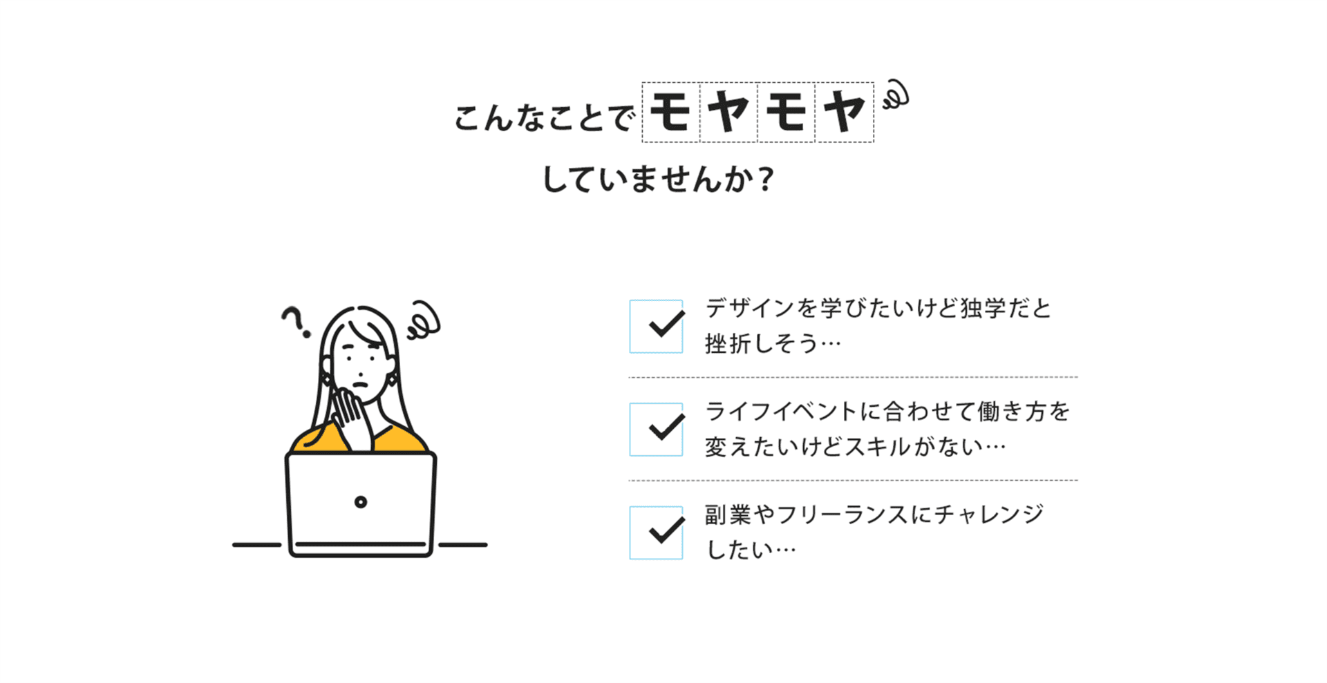 制作作品のアップロードとマンツーマン授業の予約で希望職種のスキルチェックを受けられる機能が新登場。マンツーマン授業では、伸ばすべきスキルのアドバイスや現状スキルで目指せる年収帯などのフィードバックをお伝えします。